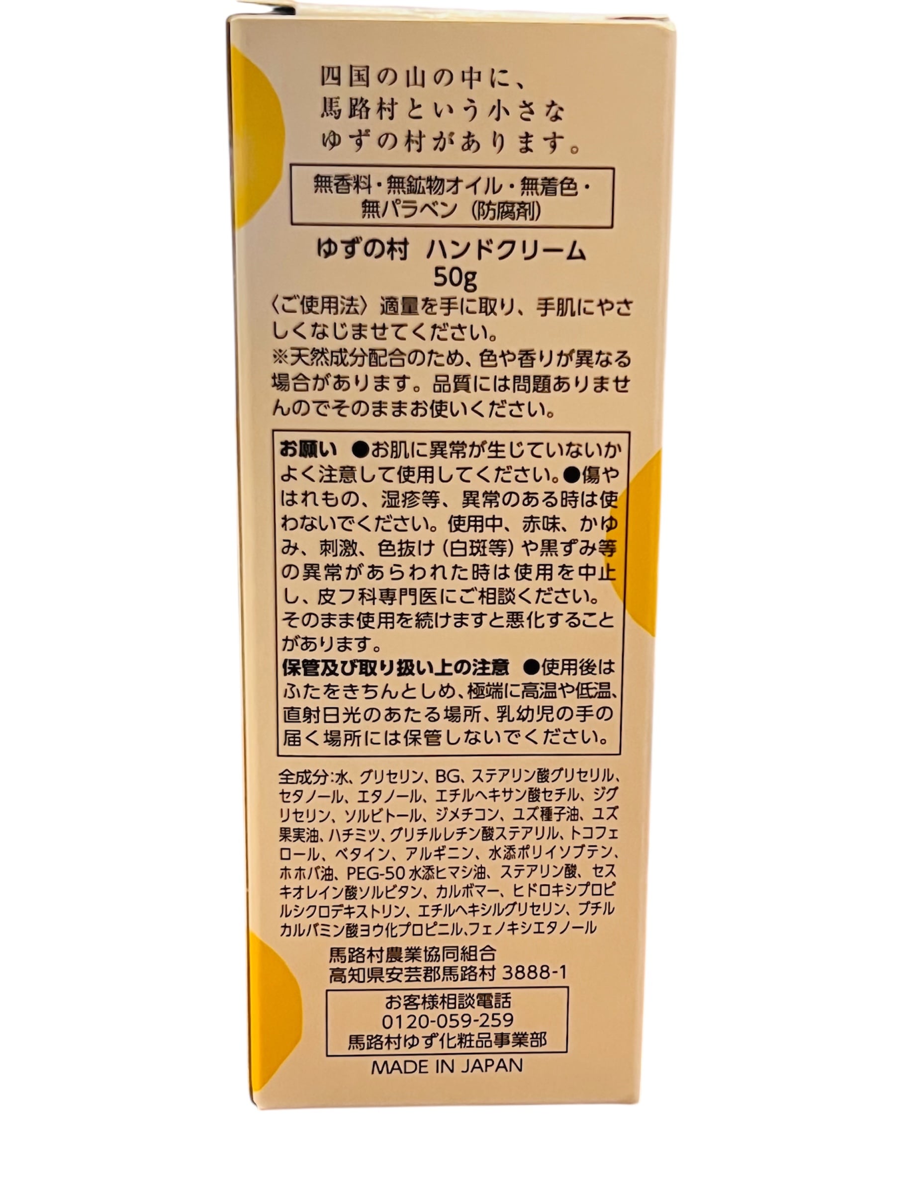 ごっくん馬路村で有名な馬路村農協がつくるハンドクリームです。当店でもリピーター続出の商品です。